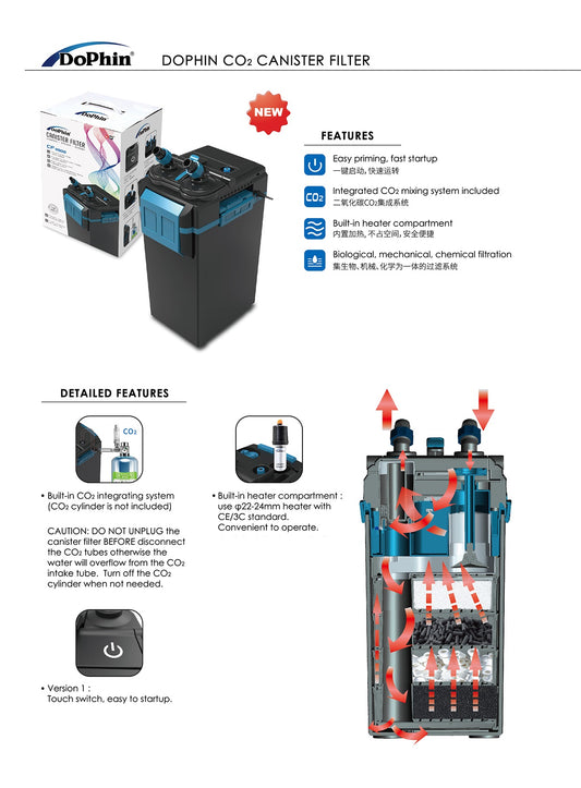 DoPhin Canister filters with Co2 diffusion and Heating compartments